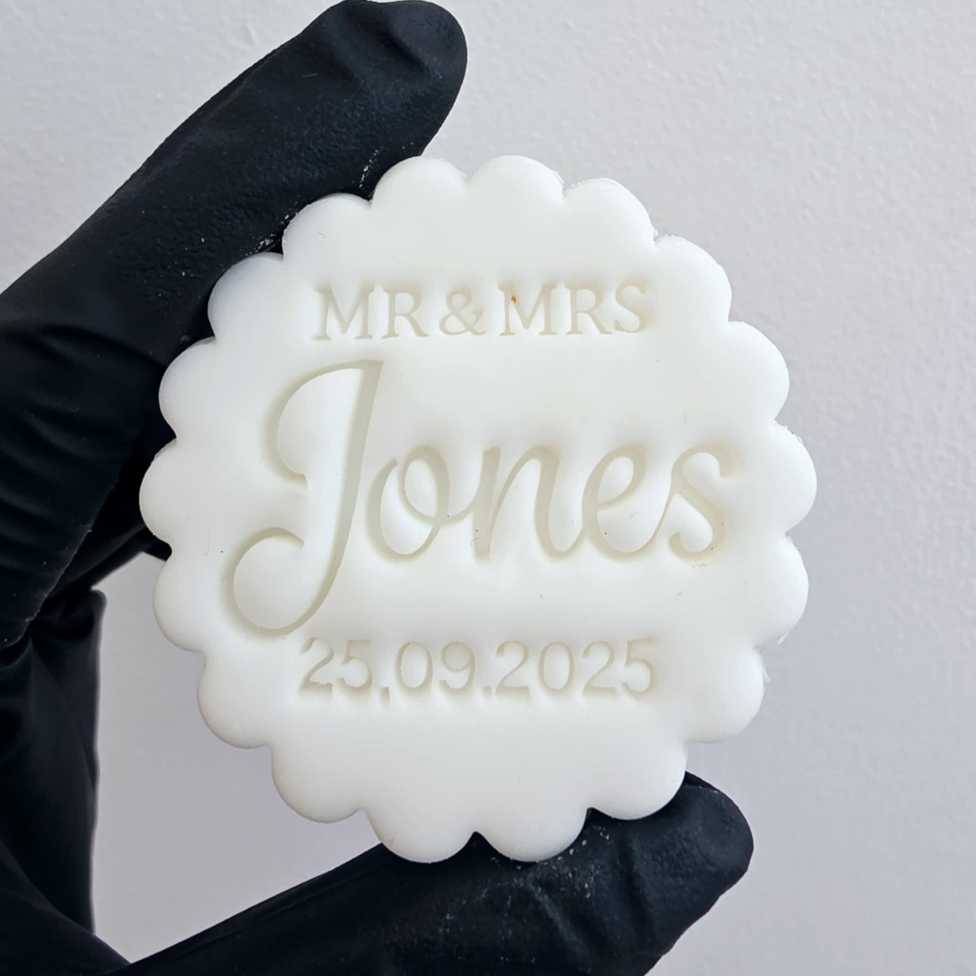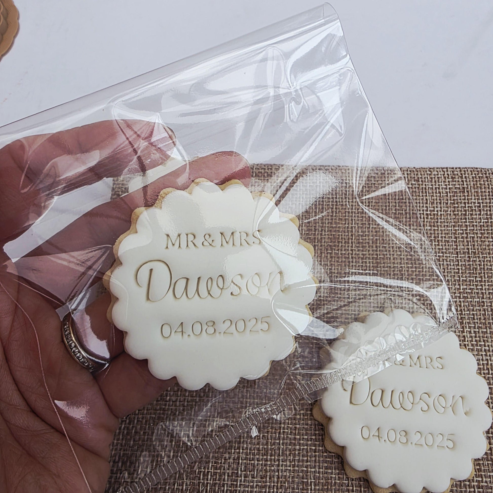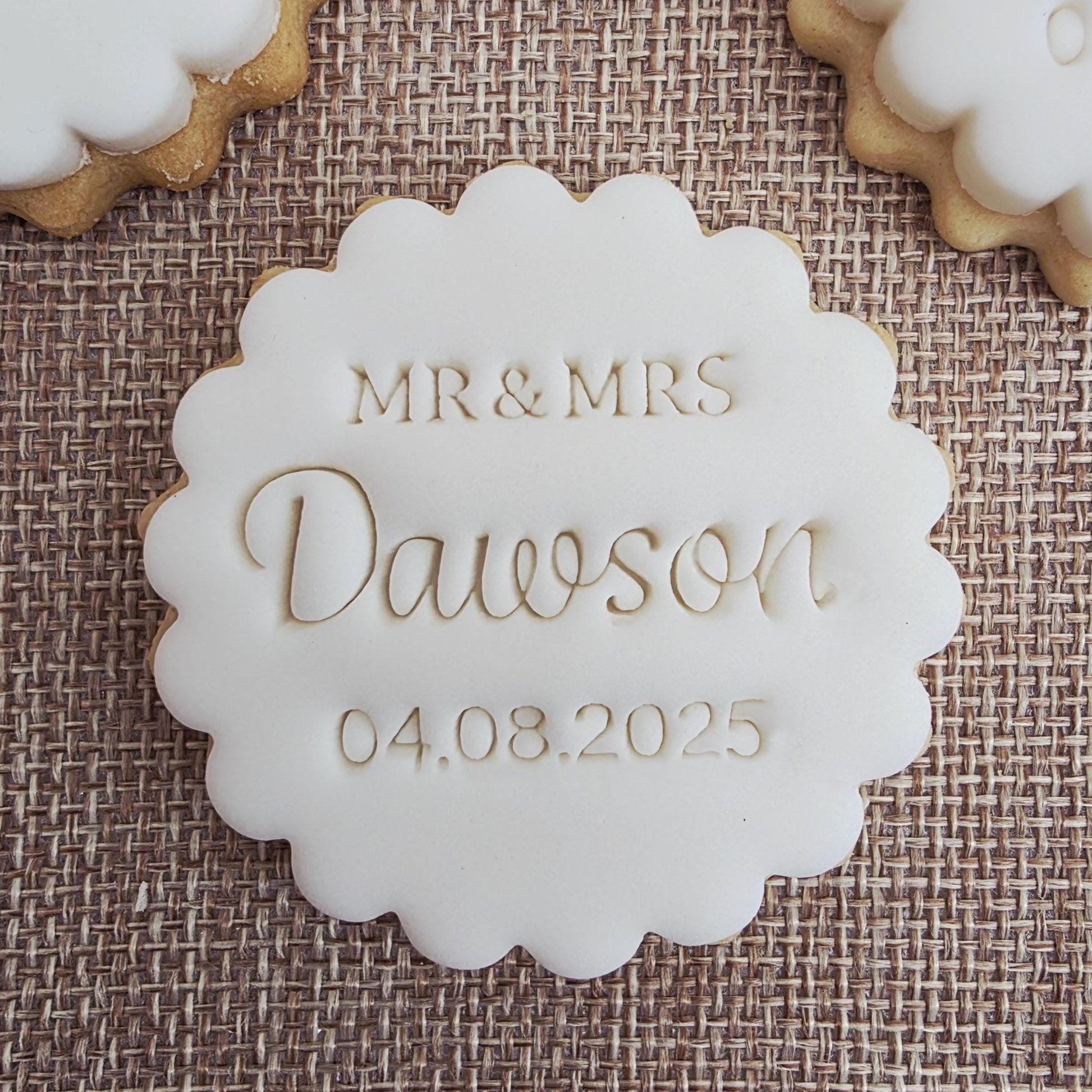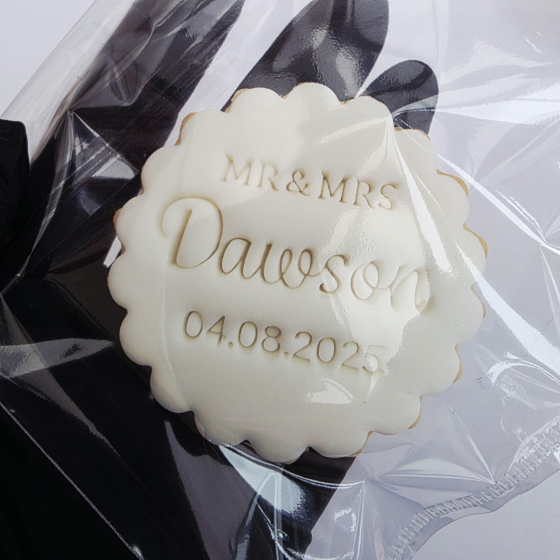 Make your own wedding cookies with our Custom Mr and Mrs Name Date Fondant Stamp, perfect for creating adorable, personalised cookies for weddings and anniversary celebrations.