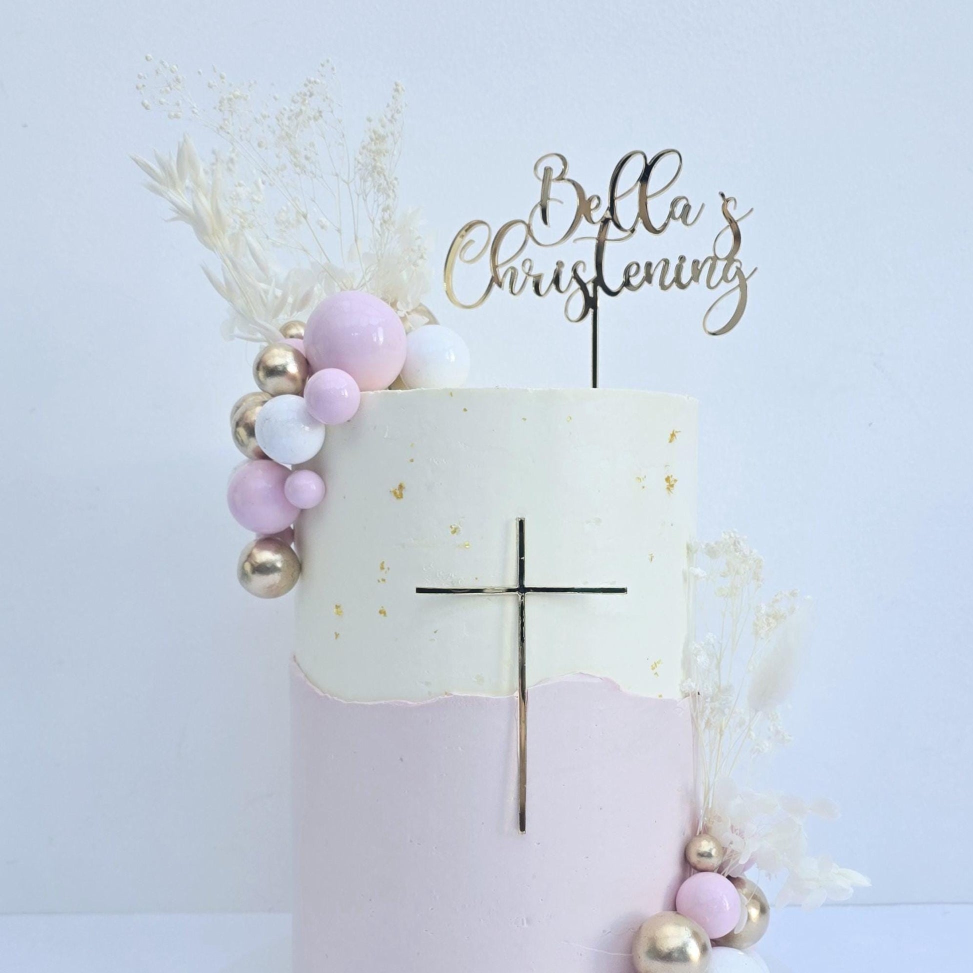 Personalised Christening cake topper with optional cross charm